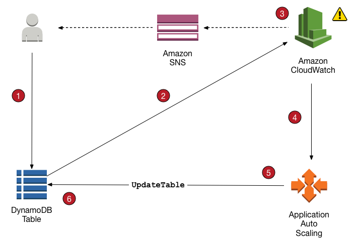 Desde Junho/2017 o DynamoDB passou a contar com a capacidade de Auto-Scaling, liberando administradores da complexa e custosa tarefa de ajustar manualmente o throughput das tabelas no DynamoDB. O trecho abaixo foi copiado da página da AWS e explica como o processo funciona.