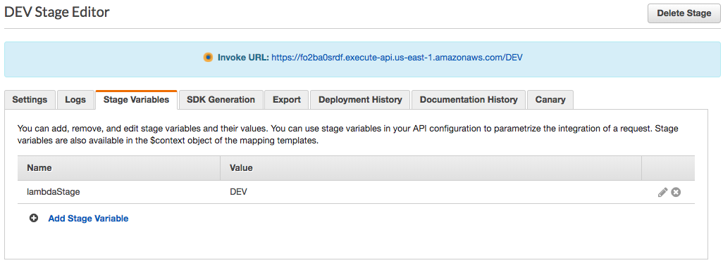 Basta copiar e colar na linha de comando, substituindo ${stageVariables.lambdaStage} pelo stage. Este passo deve ser automatizado dentro de um processo DevOps para evitar intervenção manual. Isto será alvo de um próximo artigo. Para efeitos deste artigo, o comando seria alterado e executado da seguinte forma: