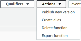 No exemplo acima a versão a ser executada será a apontada pelo alias. O Lambda fornece uma API específica para associar uma versão a um alias.